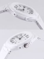 AET remould Patek Philippe ceramic white dial with strap is a 1:1 superclone watch. It is made with the same materials and to the same specifications as the genuine Patek Philippe Nautilus 5711/1A-018, except for the movement, which is a cloned movement instead of the genuine Patek Philippe Calibre 26-330 S C.