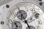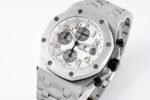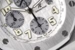 Audemars Piguet Royal Oak Offshore Chronograph 25721ST 1:1 Superclone. It is a stainless steel watch with a white dial and a chronograph. It has a stainless steel case and a stainless steel bracelet.