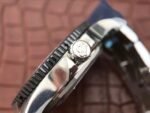 Solid Steel Case back complete with Breitling Markings and Engravings. Black Ceramic Rotating Bezel