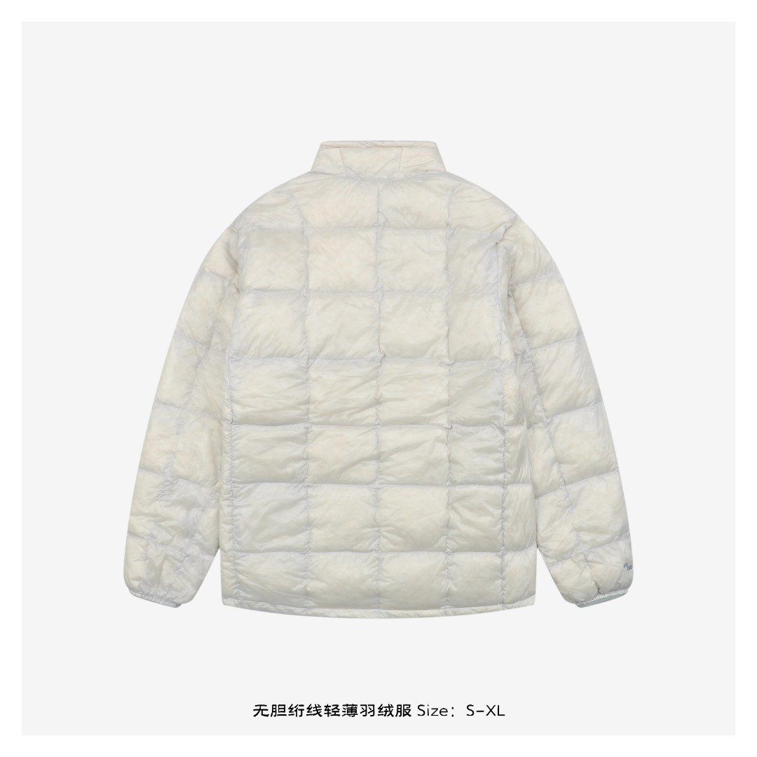 – Filled with 80% white duck down, size S: 120g, size M: 130g, size L: 140g, size XL: 150g