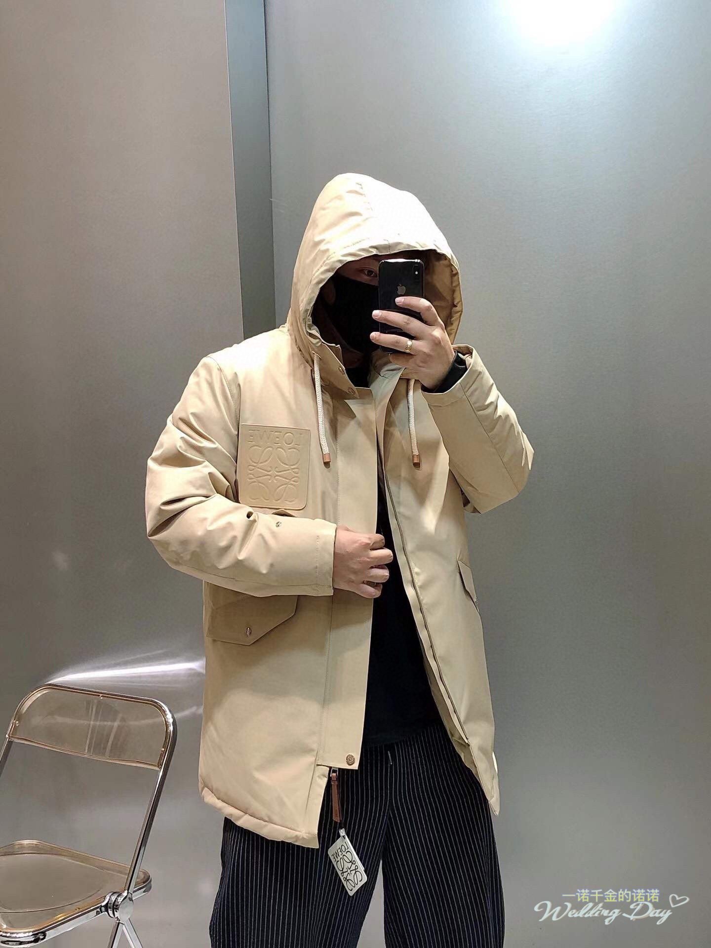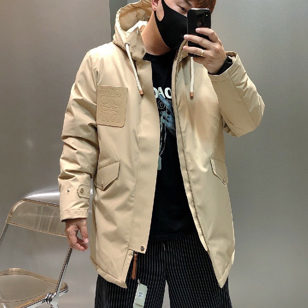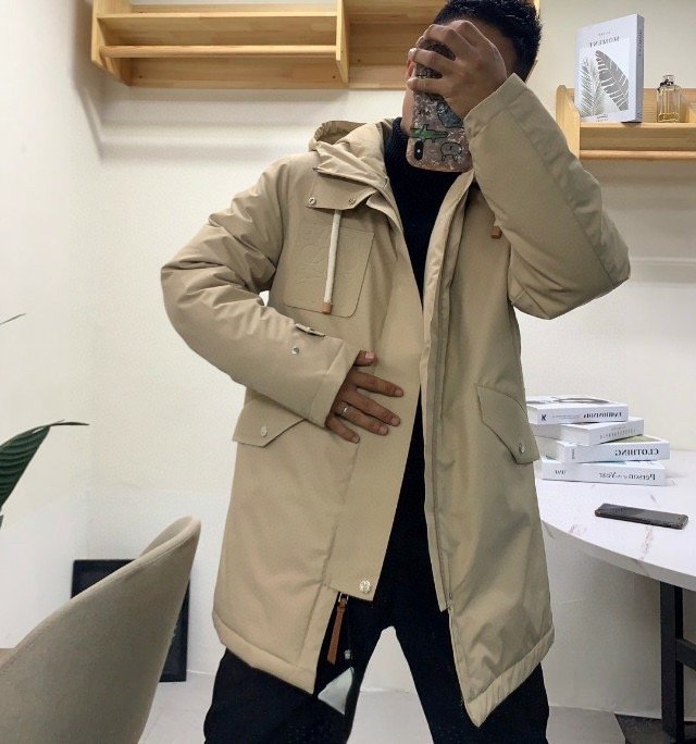#Loewe 22Fw Leather Label Hooded Mid-Length Down Jacket – On-body Look