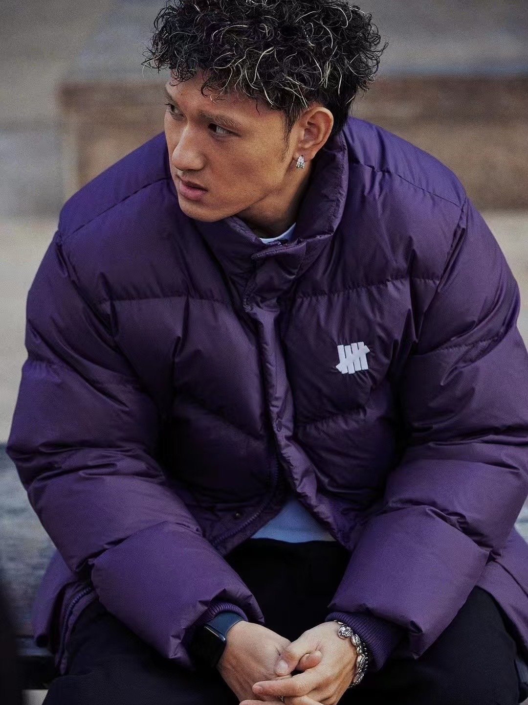 UNDEFEATED Five-stripe Embroidered Stand Collar Down Jacket – On-body effect #