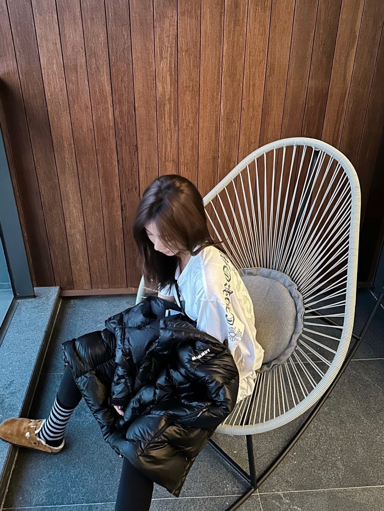 MAMMUT/Gravity logo hooded down jacket – how it looks when worn #