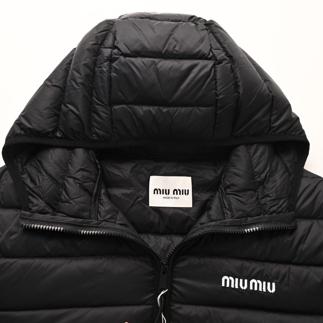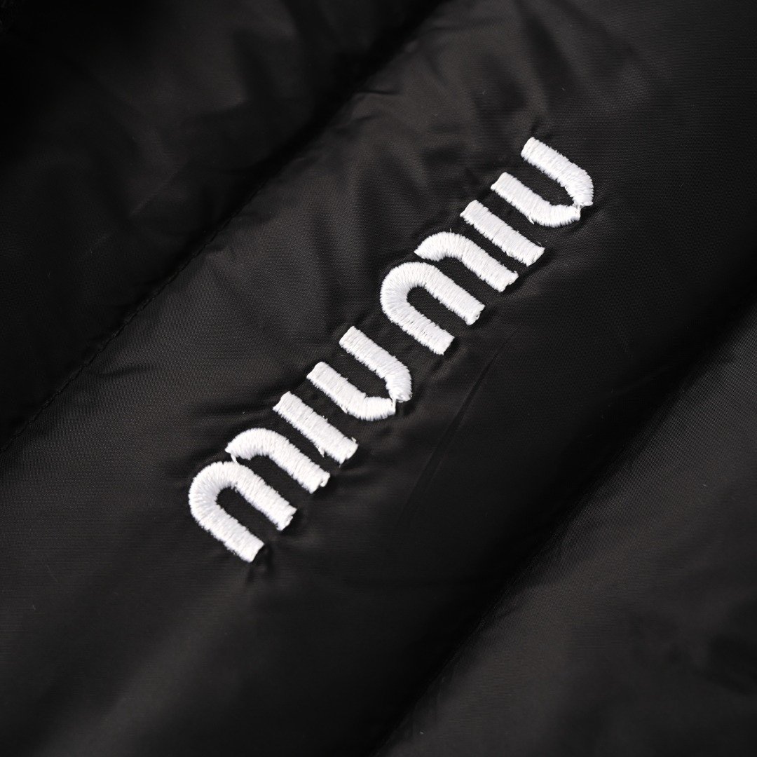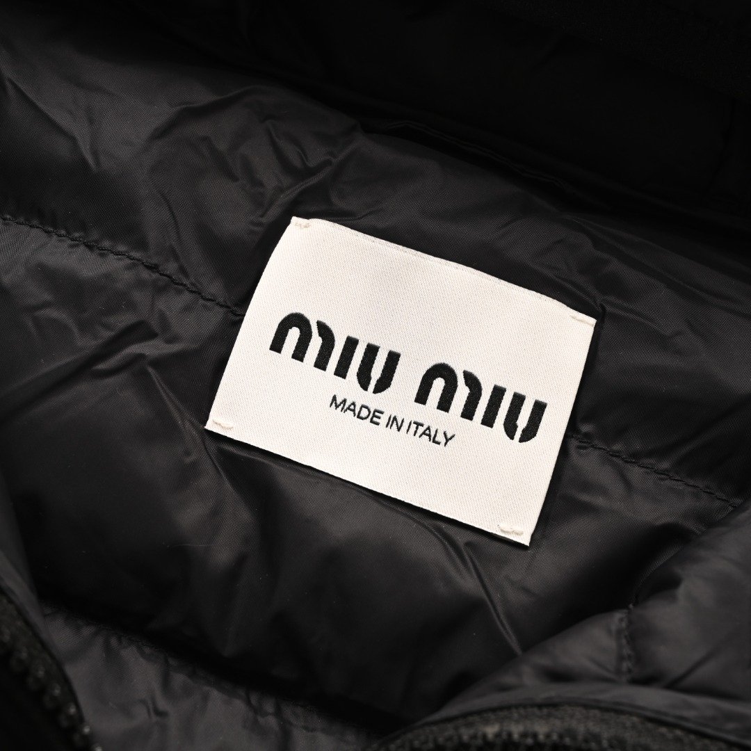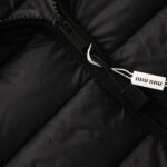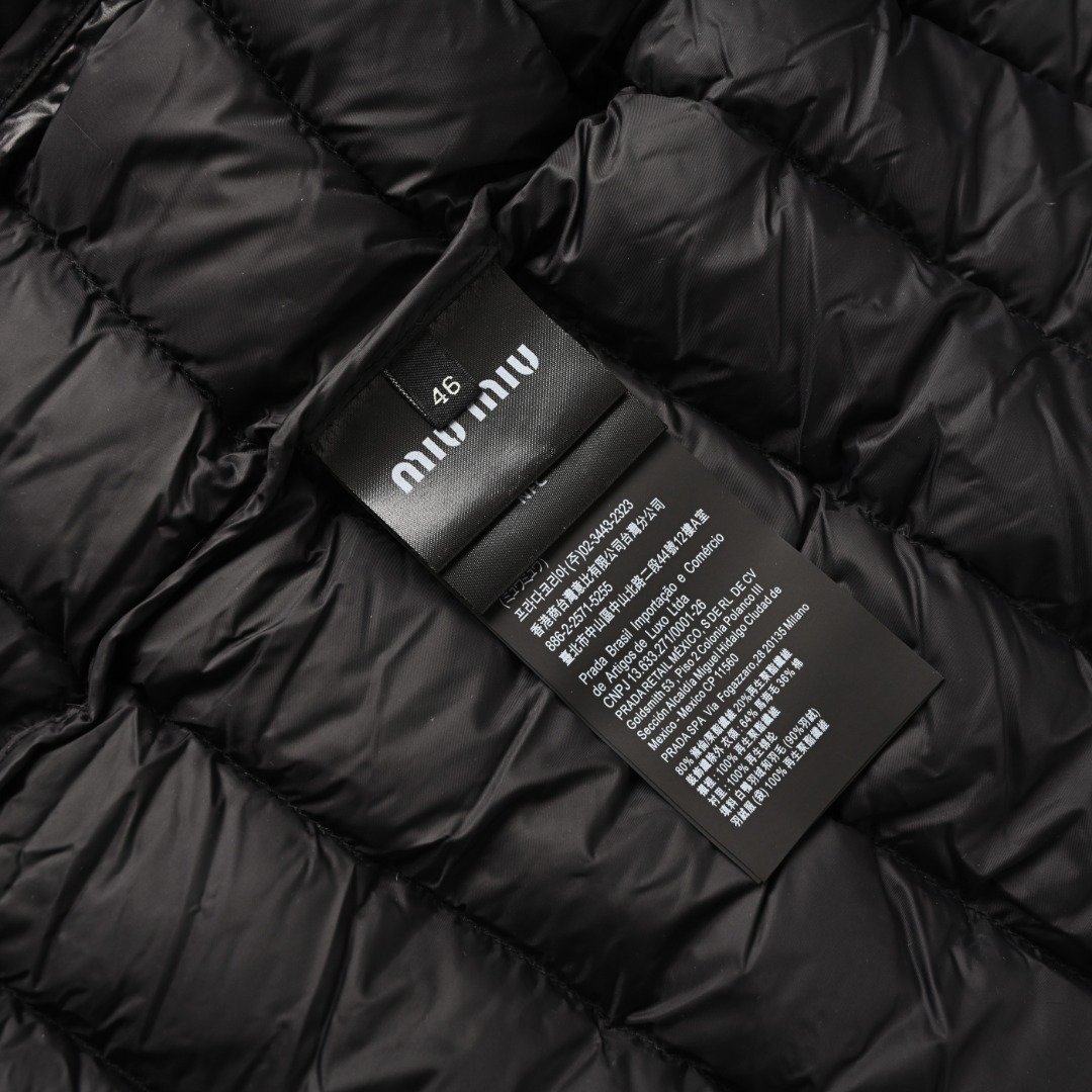 1. The logo uses imported machine embroidery technology, employing an advanced computer control system and precision mechanical parts to achieve high precision, smooth lines, and delicate details in the MIU MIU embroidery process. 2. Uses imported size 7 needles and fine down-proof thread for quilting, with 13 stitches every 3 centimeters, resulting in straight stitches without skipped stitches. 3. The sides of the zipper are covered and sewn with matching fabric, making the zipper teeth and strap almost invisible from the front and side. The binding doesn’t stop at the neckline but continues upwards, showing only a continuous, even seam. This achieves perfect windproof continuity and creates a smooth, sophisticated look. Size: 46 48 50 52
