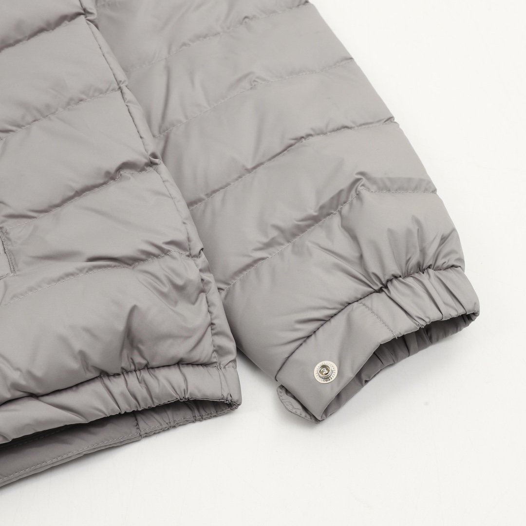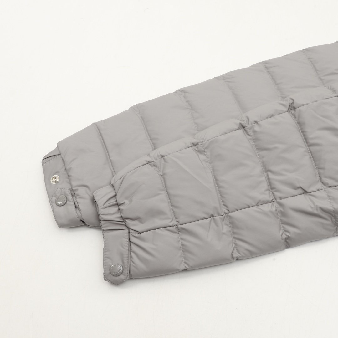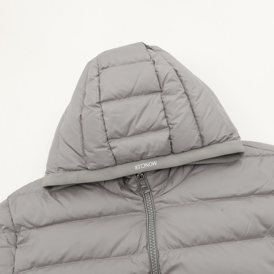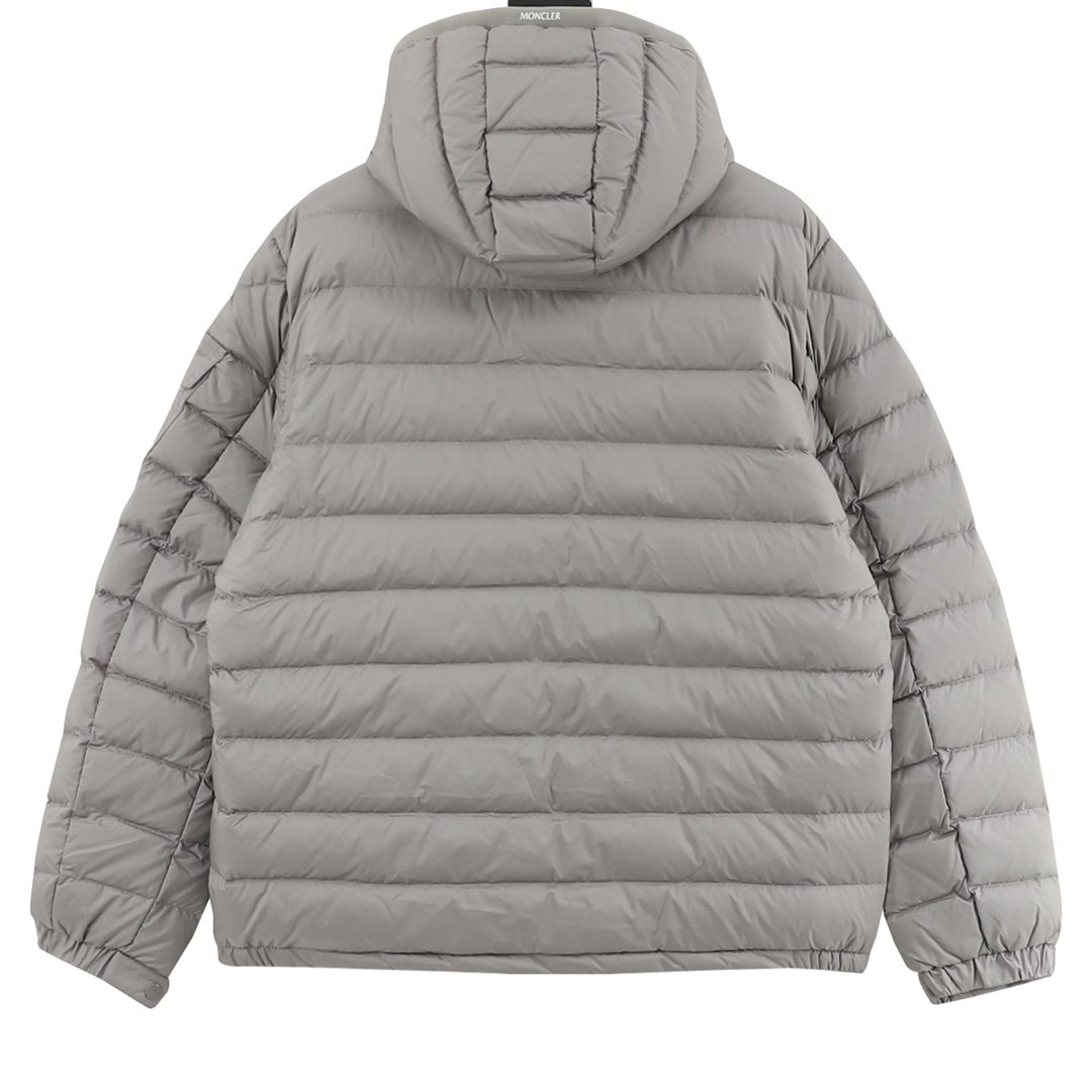 This Moncler lightweight hooded down jacket with lettering is a simple and versatile light gray color. Filled with polyester and duck down, it’s warm yet lightweight, perfect for autumn and winter! The loose fit is unisex, the hooded design is windproof and practical, and the zipper and snap buttons make it easy to put on and take off. Elasticated cuffs and hem further enhance wind protection. Suitable for daily commutes and outdoor activities, it pairs easily with jeans or casual pants for a stylish look.