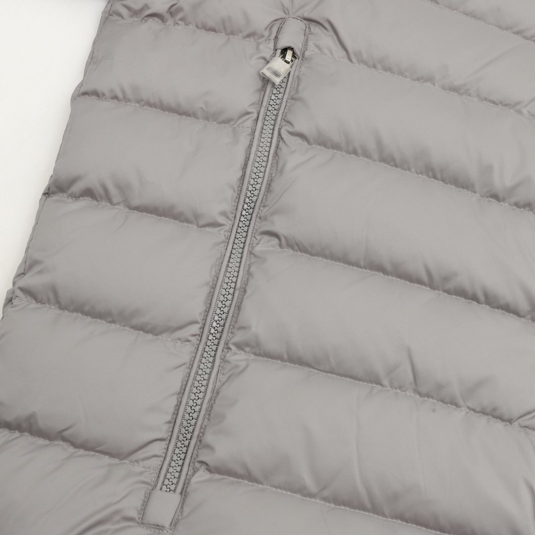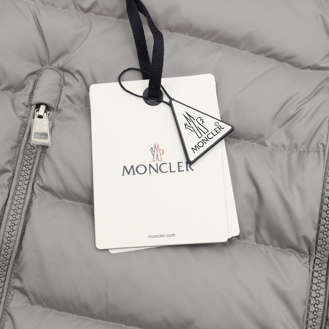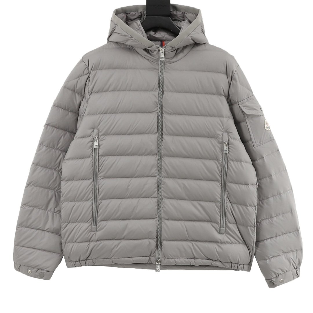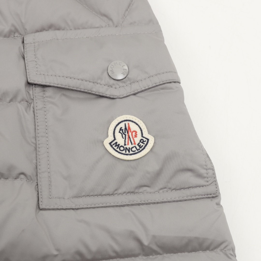 This Moncler lightweight hooded down jacket with lettering is a simple and versatile light gray color. Filled with polyester and duck down, it’s warm yet lightweight, perfect for autumn and winter! The loose fit is unisex, the hooded design is windproof and practical, and the zipper and snap buttons make it easy to put on and take off. Elasticated cuffs and hem further enhance wind protection. Suitable for daily commutes and outdoor activities, it pairs easily with jeans or casual pants for a stylish look.