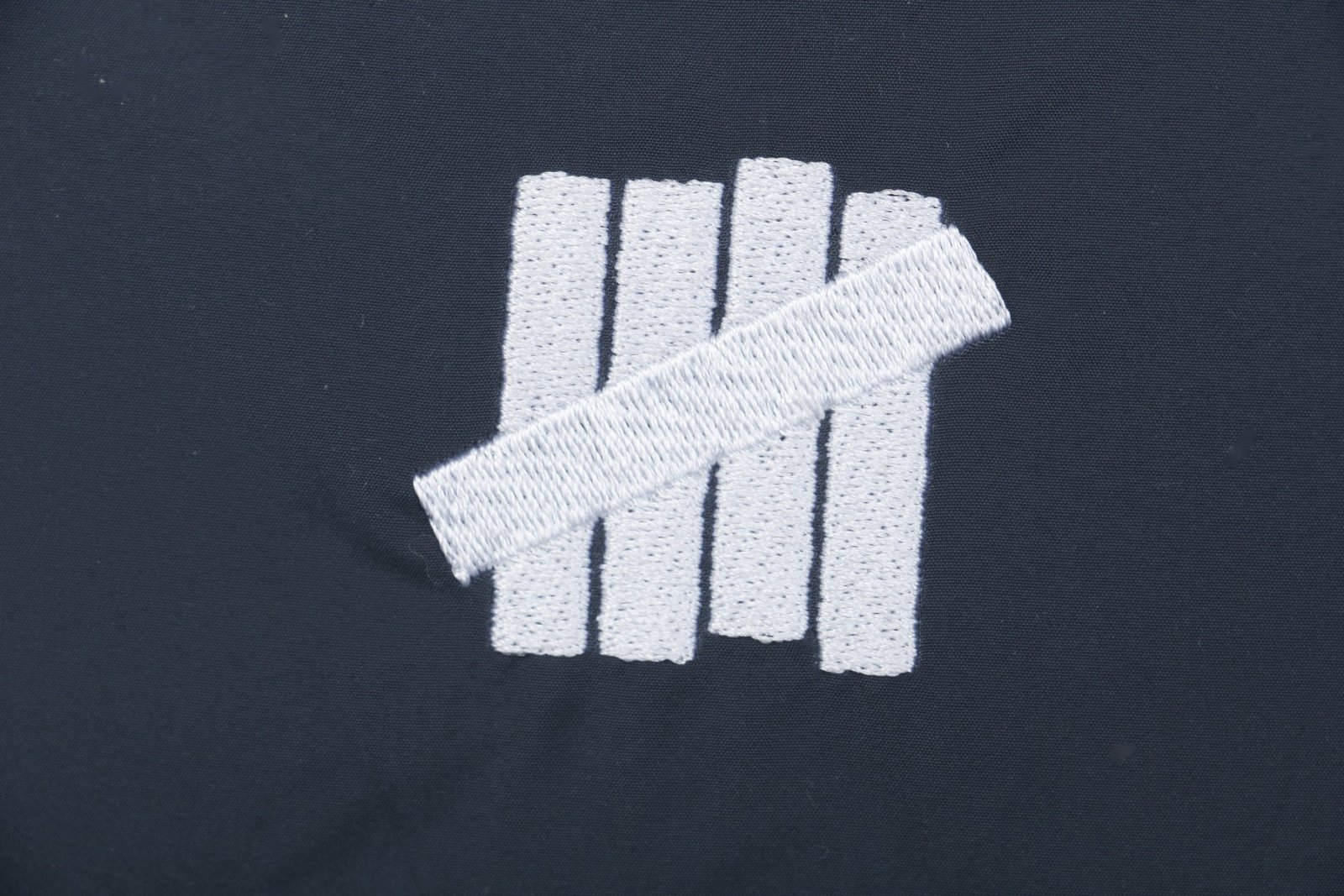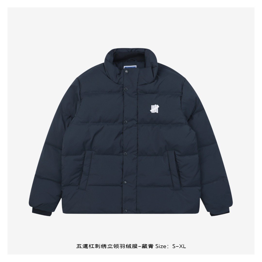 Undefeated Five-Stripe Embroidered Stand-Up Collar Down Jacket – Navy Blue