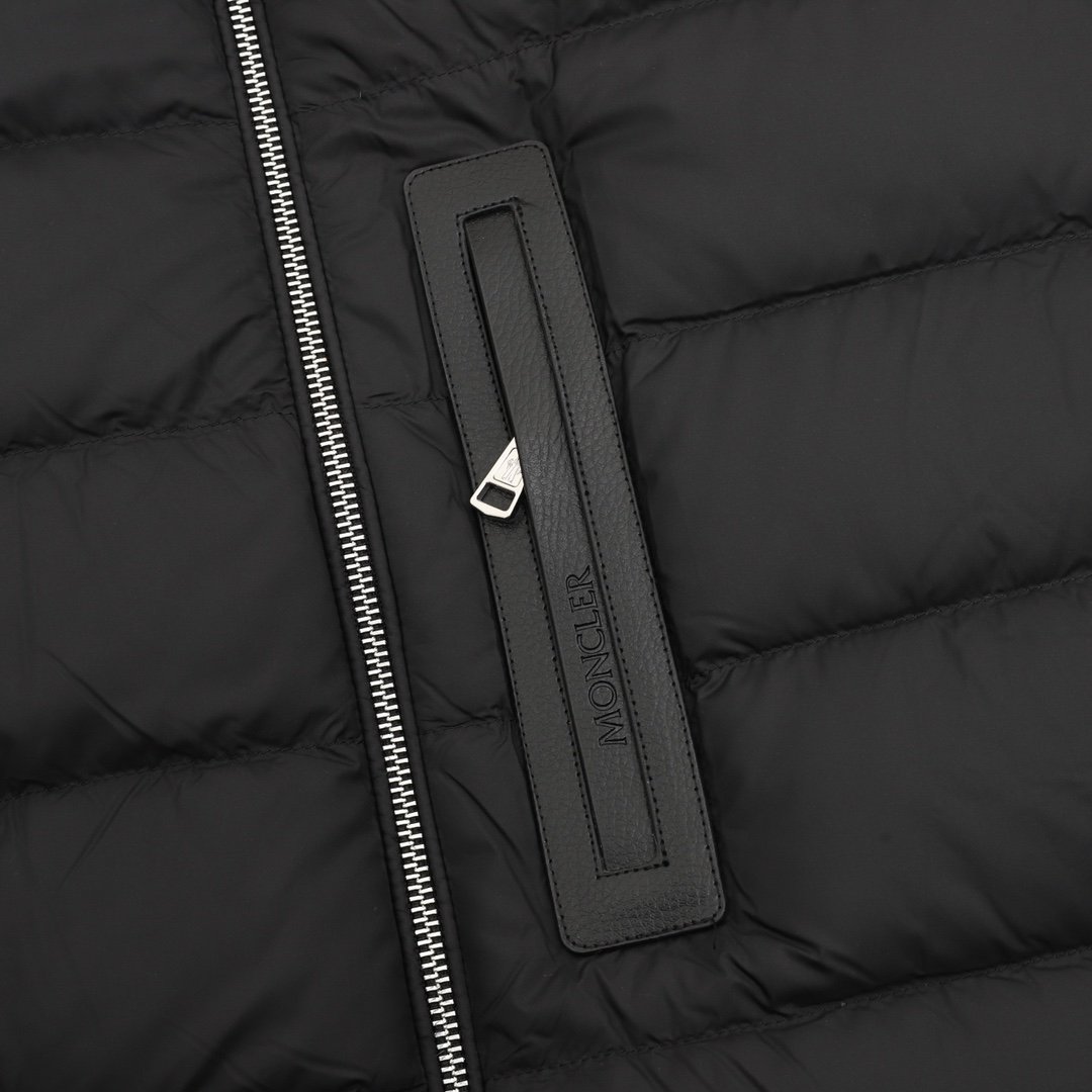 Moncler 25Fw New Black Label Leather Zipper Stand Collar Down Jacket