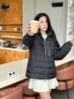 Moncler 25Fw New Black Label Leather Zipper Stand Collar Down Jacket – How it Looks When Worn #