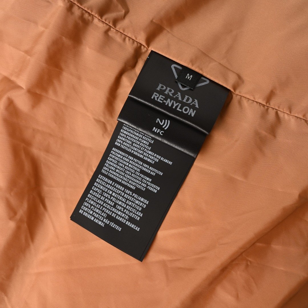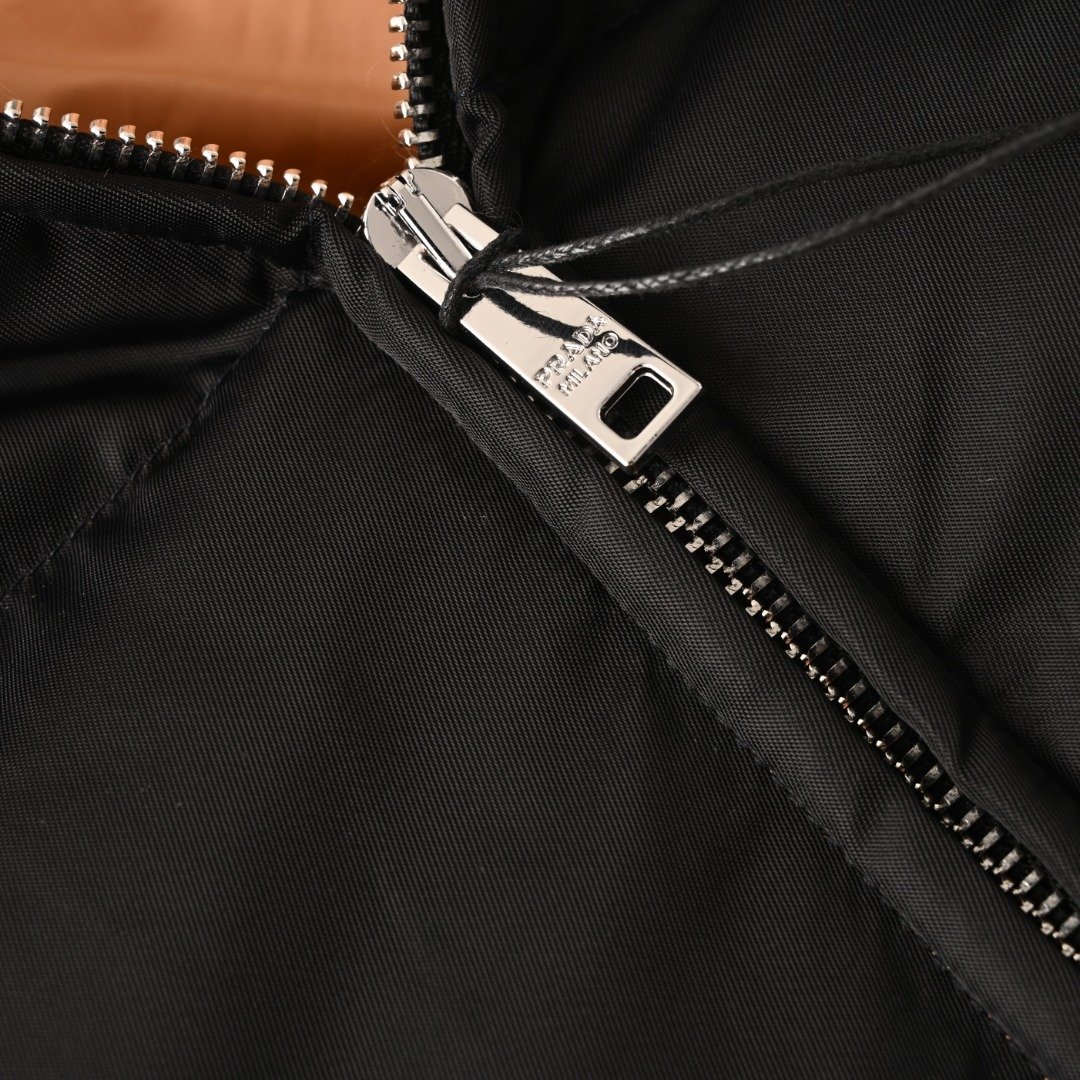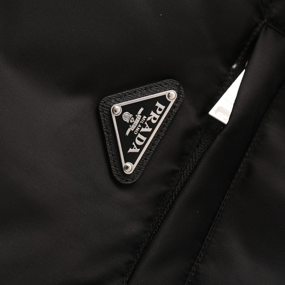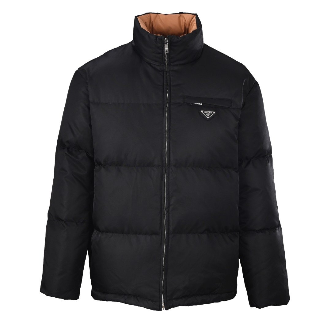 PRADA PRD Nylon Zipper Pocket Color-Blocked Stand Collar Down Jacket