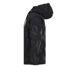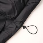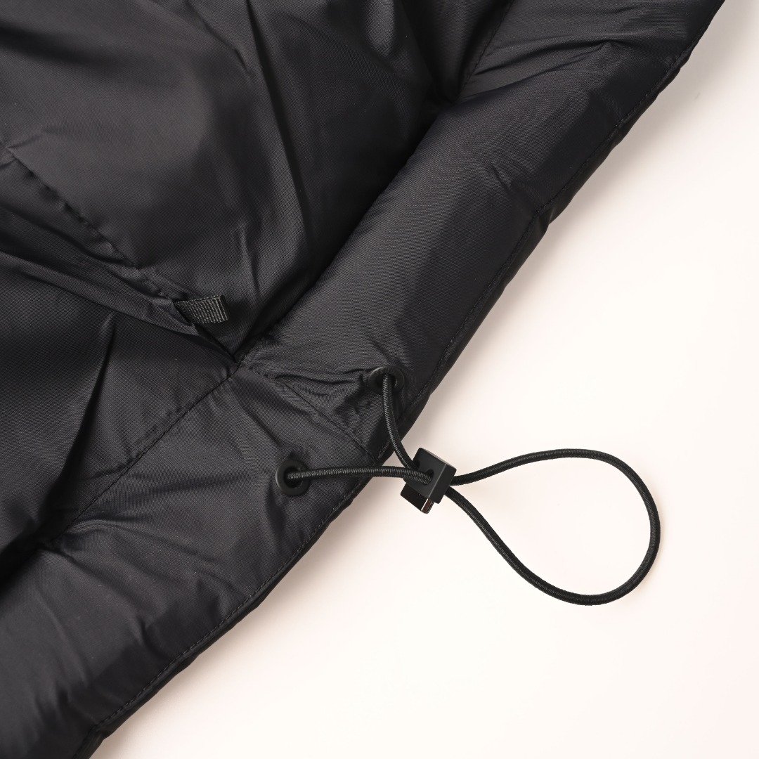 Custom-made aerospace-grade 75D heat-locking nylon, using the new national standard 90% white duck down (testing welcome). High down filling volume, excellent warmth, computer-controlled mechanical filling, prioritizing the determination of the filling area through the creation of inner lining patterns to determine the weight of down per square meter according to the original 3D effect. This allows for the calculation of the filler amount for each fabric piece. The computer-controlled filler machine uses a digital weighing unit for stable measurement. The double-F jacquard pattern is created by altering the yarn interlacing during weaving. Multiple weaving and dyeing cycles ensure color accuracy (minimum order of 1600 meters per batch, expensive). CNC laser burning-in the fabric pieces utilizes the high energy of lasers, precisely controlling the laser beam’s path to achieve precise piece shape cutting. Zero-filling direct filling and five-dimensional embossing are employed. A special coating pretreatment forms the first invisible filler barrier. Low-temperature, high-pressure molding and pressing are followed by simultaneous application of a five-layer functional coating to the fabric surface. Finally, laser cutting trims the edges, and laser seamless edging is completed. The computer-controlled template machine produces highly neat and smooth lines. The technician’s precise control of dimensions ensures each line meets design requirements, resulting in smooth, uniform, clean, and aesthetically pleasing lines. Loose fit
