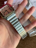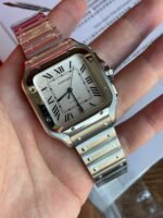 The new original Santos upgrade breakthrough point is its bracelet using the patented SmartLink “bracelet adjustment device with a fast removal strap function can not use any tools to quickly dismantle the strap This is a super convenient a highlight.