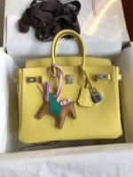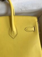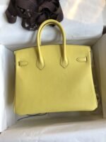 Hand-stitched ?Birkin 25cm Imported Swift Leather Lemon Yellow ? Silver Buckle