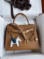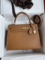 Hand-stitched ?Kelly 28cm Imported Epsom Leather Gold Brown Gold Buckle