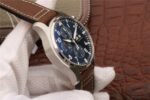 World Pilot Series IW377714 original open-mode flyer. 7750 automatic mechanical movement, 43 mm, men's power reserve: 44 hours Appearance diameter: 43 mm case thickness: 15 mm case material: stainless steel dial color: blue dial shape: round mirror material: double-sided anti-reflective convex sapphire glass mirror crown material: fine steel strap material: calfskin buckle material: steel waterproof depth: 150 meters