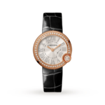 luxury fake Ballon Blanc de Cartier watch, 30 mm, rose gold, diamonds, leather