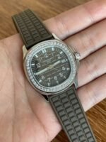 PATEK PHILIPPE – 5067A full range of watches, bringing the best replica products and ultimate experience on the net. Strap Buckle] 1. The natural compound rubber (Tropical) material is consistent with the original, durable and wear-resistant, resistant to seawater erosion and ultraviolet radiation. 2. Perfectly cloned Aquanaut classic folding clasp, even in the very small corners are also chamfered embellishments, to ensure that the restoration of the genuine sense of comfort. 3. Case] 1. watch size 35.6X7.7mm rounded octagonal case with the original consistent, maintaining the vintage styling and superbly polished. 2. screw-down handle design and solid back cover coincide with the original, 3. bezel inlaid with 46 top-grade Swarovski crystals (a total of 1 carat) [Movement] Swiss quartz movement modified PPCal.E23-250 core. Stable timekeeping, long-lasting, cost-effective.