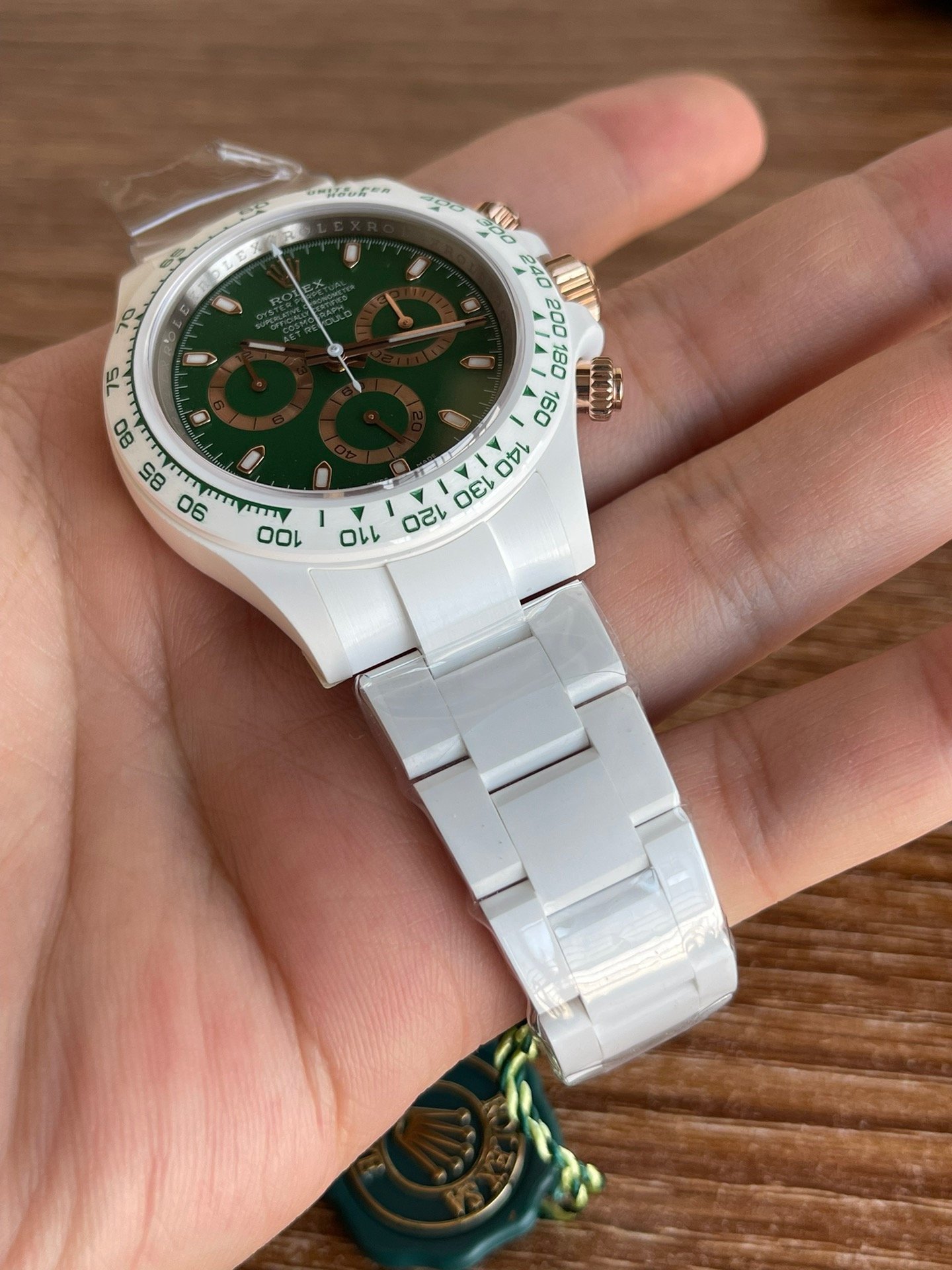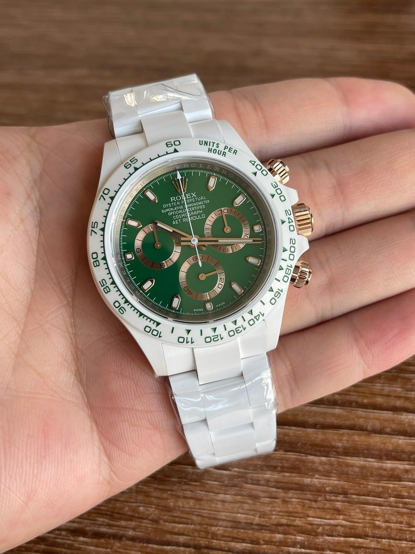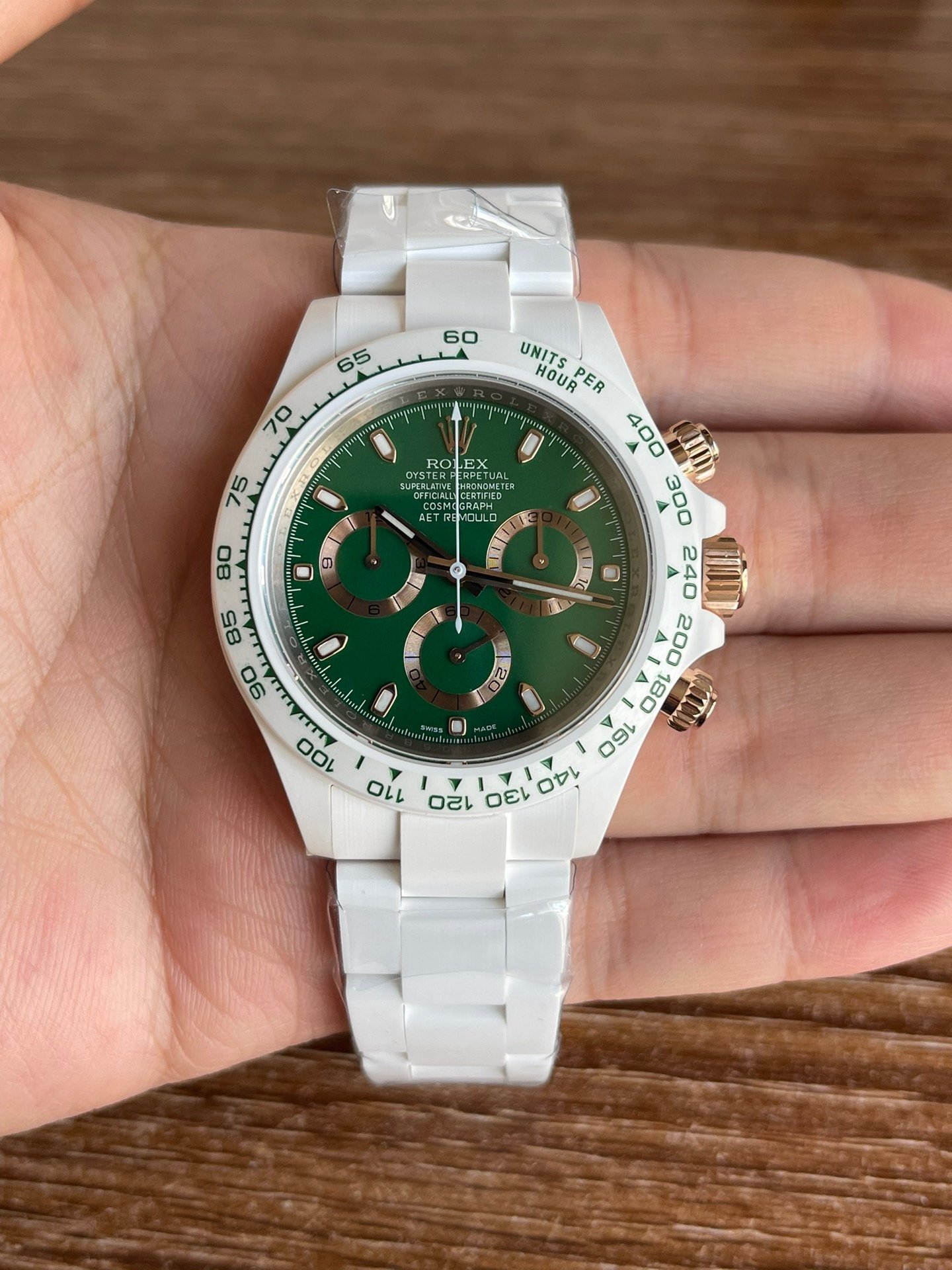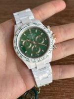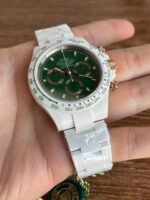 Germany imported super nano-ceramic! It is the only one in the industry. The case, bracelet and Cerachrom ceramic solid bezel with tachymeter scale are all made of the newly developed Super Nano Ceramic material. This material is not only scratch-, abrasion- and dirt-resistant, but also highly resistant to pressure and water. The dial scale is filled with Swiss Superluminova, allowing you to see the time clearly even when there is no light source at all.